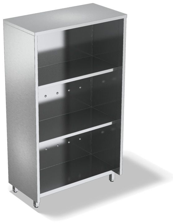 400х500х1750мм, Стеллаж закрытый без дверей из нержавеющей стали марки AISI 430 толщиной 0,8 мм. Задняя стенка из нержавеющей стали марки AISI 430 толщиной 0,8мм. Внутри три полки из нержавеющей стали марки AISI 430 толщиной 0,8мм. Регулируемые опоры. Поставляется в собранном виде.