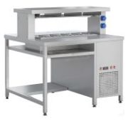 1400х700х1280мм, Стол фасовочный пристенный с нейтральной ванной на 6 GN1/3 глубиной 100 мм и тепловой поверхностью,подсветка, направляющие под противни 400х600мм. Гастроемкости в комплект не входят.