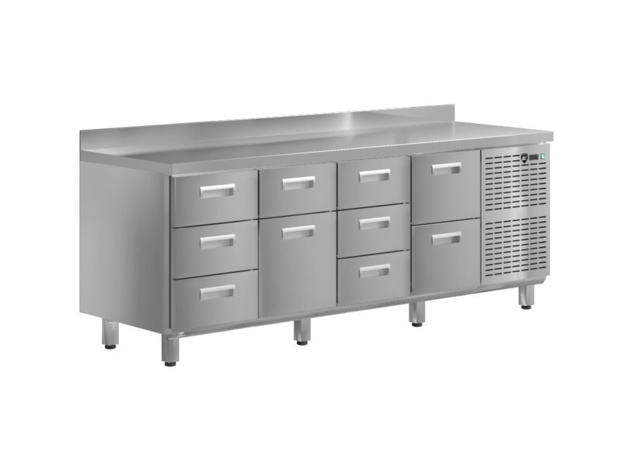 2200х700х850мм. Диапазон температур -2…+6 C, условия окружающей среды (t,C/вл-ть, %): до +32/до 60, тип охлаждения: динамический. Тип оттайки: естественными теплопритоками. Боковое расположение агрегата. Наличие борта.(1 секция-3 ящика, 2 секция-маленький ящик 1шт.,большой ящик 1шт., 3 секция-3 ящика, 4 секция - 2 ящика)