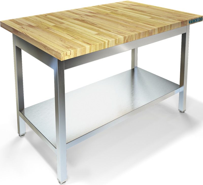 1100х800х850мм, Стол кондитерский со столешницей бук толщиной 40мм. Каркас разборный из трубы 40х40 нержавеющей стали марки AISI 430 толщиной 1,2мм. Полка сплошная из нержавеющей стали марки AISI 430 толщиной 0,8мм. Регулируемые опоры. Стол поставляется в разобранном виде.