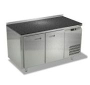 1390х700х850мм, Морозильный стол с бортом высотой 50мм, боковое расположение агрегата. Столешница камень толщиной 20мм, корпус из нержавеющей стали марки AISI 430. Задняя панель и дно из оцинкованной стали. 1 дверь, 2 ящика гастронормированных нагрузка по 35кг на ящик, направляющие с доводчиками (Австрия). Температурный режим -10...-18, напряжение 220В, мощность 220Вт, внутренний объем стола 350л, полезный объем стола 187л. Компрессор (Испания). Хладон R404. Петля доводчик (Польша). Полка решетка регулируемая по высоте с шагом - 45мм, гастронормированная, нагрузка 35кг. Нога опорная круглая, регулировка 50мм (Италия). Поставляется в собранном виде.