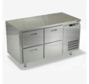 1390х700х850мм, Морозильный стол без борта, боковое расположение агрегата. Столешница и корпус из нержавеющей стали марки AISI 430. Задняя панель и дно из оцинкованной стали. 2 ящика гастронормированных нагрузка по 35кг на ящик, направляющие с доводчиками (Австрия). Температурный режим -10...-18, напряжение 220В, мощность 220Вт, внутренний объем стола 350л, полезный объем стола 180л. Компрессор (Испания). Хладон R404. Нога опорная круглая, регулировка 50мм (Италия). Поставляется в собранном виде.