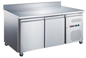 1360x700x950 мм, 230В, 0,52 кВт, 282 л, -18...-22 С, 2 двери, полки GN1/1, одна полка для каждой двери в комплекте, столешница из нержавеющей стали, с бортом, боковое расположение холодильного агрегата, динамическое охлаждение, на колесах