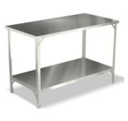 1500х700х850мм, Стол производственный с бортом высотой 40 мм, столешница из нержавеющей стали AISI 430 толщиной 0,5 мм с подложкой ДСП толощиной 16 мм. Каркас из нержавеющей стали AISI 430 толщиной 1,5 мм, сплошная полка из нержавеющей стали AISI 430 толщиной 0,5 мм с усилителем. Полка стола выдерживает распределенную статическую нагрузку - 40 кг, столешница - 100 кг. Наличие подгибов по периметру столешницы и полки исключает опасность травм.