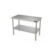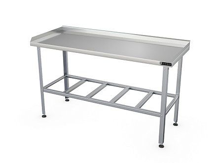 1100х600х870мм, нагрузка на столешницу 99кг, 3 борта, высота борта 50мм, столешница нерж. сталь AISI430 0,8мм, подложка столешницы ДСП 16мм. Каркас оцинкованная сталь 1,2мм, уголок 40х40мм. Полка -решетка из оцинкованной стали. Регулируемые ножки 20мм. Вес 18,9кг. Наличие борта с трех сторон позволяет работать с мукой, изделиями из теста,-А также для выполнять обвалку мясных и рыбных блюд, исключая попадание остатков обрабатываемой продукции на пол, что значительно упрощает уборку помещения. Изделие разборное и поставляется в удобной упаковке, что облегчает транспортировку и хранение.