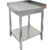 800х700х850мм, Стол производственный с объемным бортом высотой 70мм, столешница из нержавеющей стали марки AISI 430 толщиной 0,8мм. Каркас разборный из уголка 40х40 толщиной 2мм, покрытого порошковой краской серого цвета. Сплошная полка-накладка из нержавеющей стали марки AISI 430 толщиной 0,8мм. Регулируемые опоры. Стол поставляется в разобранном виде.