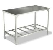 1200х700х850мм, Стол производственный без борта, столешница из нержавеющей стали AISI 430 толщиной 0,5 мм с подложкой ДСП толщиной 16 мм. Каркас из оцинкованной стали толщиной 1,5 мм, сплошная полка из оцинкованной стали толщиной 0,55 мм с усилителем. Полка стола выдерживает распределенную статическую нагрузку - 40 кг, столешница - 100 кг. Наличие подгибов по периметру столешницы и полки исключает опасность травм.