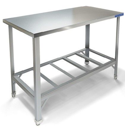 800х800х850мм, Стол производственный без борта, столешница из нержавеющей стали марки AISI 304 толщиной 0,8мм. Каркас разборный из уголка 40х40 толщиной 2мм, покрытого порошковой краской серого цвета. Полка-решетка из крашенного металла толщиной 2мм. Регулируемые опоры. Стол поставляется в разобранном виде.