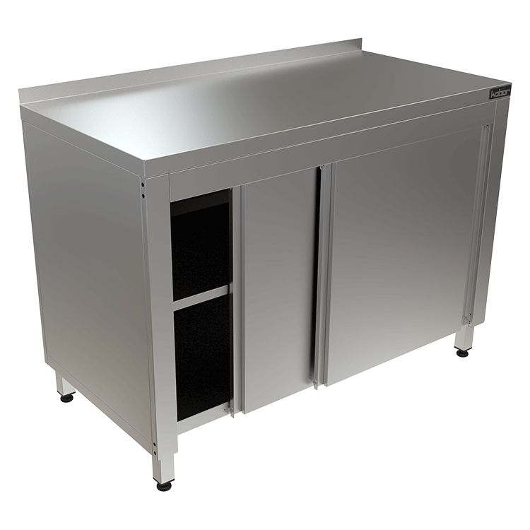 1500х700х870мм, Стол-тумба с бортом (столешница - нерж. сталь. aisi 430, усиление ЛДСП, каркас разборный из нерж. стали 430, двери-купе, полка)