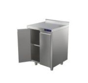 1150х600х870мм, 1 борт, высота борта 150мм, нагрузка на столешницу 100кг, нагрузка на полку 30кг. Столешница нерж. сталь AISI430 0,8мм, подложка столешницы ДСП 16мм. 3 распашные двери. Двери, боковые панели и столешница выполнены из нержавеющей стали AISI430. Дно и задняя стенка выполнены из оцинкованной стали. В комплект стола входят 2 полки, усиленные ребром жесткости. Наличие полки позволяет увеличить полезное пространство в столе размещая на ней посуду, инвентарь, столовые приборы и сухие виды продуктов. Регулируемые ножки 20мм. Вес 75кг.