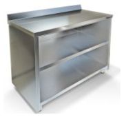 2000х700х850мм, Стол-тумба с бортом высотой 70мм. Столешница из нержавеющей стали марки AISI 430 толщиной 0,8мм, ЛДСП толщиной 32 мм. Корпус и три двери-купе из нержавеющей стали марки AISI 430 толщиной 0,8мм. Полка из нержавеющей стали марки AISI 430 толщиной 0,8мм. Задняя стенка из нержавеющей стали марки AISI 430 толщиной 0,8мм. Регулируемые опоры. Стол поставляется в собранном виде.