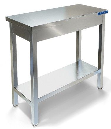 500х800х850мм, Стол-вставка для тепловой линии, столешница из нержавеющей стали марки AISI 430 толщиной 0,8мм. Каркас разборный из трубы 40х40 нержавеющей стали марки AISI 430 толщиной 1,2мм. Полка из нержавеющей стали марки AISI 430 толщиной 0,8мм. Регулируемые опоры. Стол поставляется в разобранном виде.