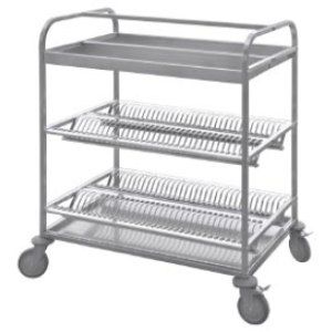 950х600х1100мм, Тележка для сушки посуды три уровня. Каркас разборный из трубы 20х20 нержавеющей стали марки AISI 304 толщиной 1,2мм. Шесть полок на 140 тарелок и 100 стаканов. Полки и поддон изготовлены из нержавеющей стали марки AISI 304 толщиной 0,8мм. Тележка поставляется в разобранном виде.