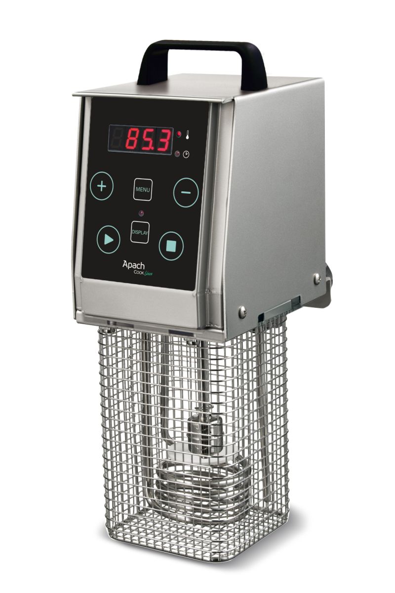 130х260х380 мм, 2 кВт, 220В. Обновленная версия зарекомендовавшего себя термостата для SOUS-VIDE. Новая панель управления - помогает Вам отслеживать процесс приготовления и облегчает планирование по времени, 25 программ, функция "Отложенный старт": позволяет отсрочить старт программы на время от 10 минут до 24 часов (с шагом настройки 10 минут). Максимальный объем воды в емкости 43 л. CE версия