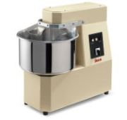 1126x698x1385мм, 5,2+0,55кВт, объем дежи 131 л, 2 мотора, 2 скорости, 2 электро-механических таймера, 78 об/мин на первой и 180 об/мин на второй скорости спираль, 13 об/мин на деже, реверс дежи, двойная трансмиссия