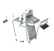Габариты 2885x1020x1220 мм, 0,75 кВт, 400 В, стол 600х1200; ручная + педаль (входит в базовую комплектацию), скорость раскатки 30м/мин, (I=вариатор скорости)