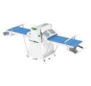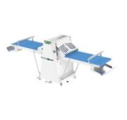 4280x1040x2260мм (в рабочем состоянии ), стол 650х1800 мм; 230В, 2 кВт. Тестораскаточная машина с основой на колёсах, изготовлена из нержавеющей стали, полностью автоматизирована. С автоматическими наматывающим устройством и устройством для посыпки мукой. Складные и съёмные рабочие столы. Сенсорный дисплей 7 со 100-та рабочими программами. Защитные покрытия цилиндров оборудованы микровыключателем безопасности и газовой пружиной. Быстрая система натяжения и открепления лент. Скребки с быстрой системой открепления QR (Quick Release), патент Rollmatic. Ящик для сбора муки оборудован микровыключателем безопасности. Автоматический съемный мукоподсыпатель в комплекте. Автоматический намонтчик на скалку так же входит в комплектацию.