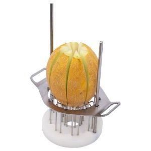 300х200х420 мм, 2,5 кг, механическое устройство из нержавеющей стали для нарезки дыни на 4 части, максимальный диаметр дыни 15 см.