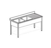 1500х700х900 мм, 1 ванна 1160х500 мм, двери-купе, нерж сталь AISI 304