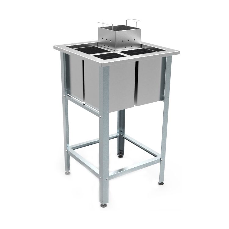 530х530х870мм, Ванна моечная для мойки яиц сварная (ёмкости - нерж. сталь aisi 430, каркас уголок оцинк. сталь, корзина), (4 емкости 200х200х300)