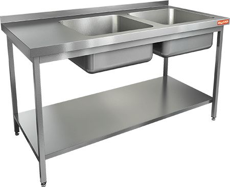1500х600х850мм, НСО2М-15/6БПП ЭН стол-моечная ванна, 2 секц., (500х400х250) справа, (нерж.угол)