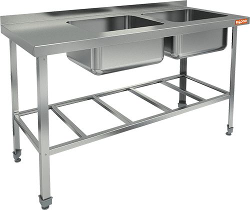 1500х600х850мм, НСО2М-15/6БРП ЭЦ стол-моечная ванна, 2 секц. (500х400х250) справа (оцин.угол.)