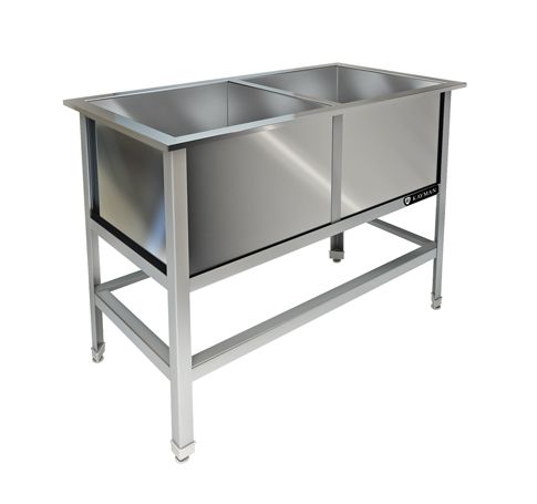 1000х530х850, ванна сварная из стали AISI 304 (2 емк.)430х430х300, каркас разборный, уголок из нержавеющей стали AISI 430, толщина 1,5 мм, рабочая поверхность изнержавеющей стали AISI 304, толщина металла 0,8 мм.