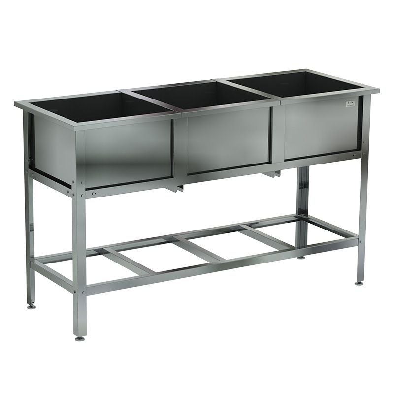 1750х630х870мм, Ванна моечная трехсекционная сварная (ёмкость - нерж. сталь aisi 430, каркас уголок оцинк. сталь), (ёмкость 530х530х400)