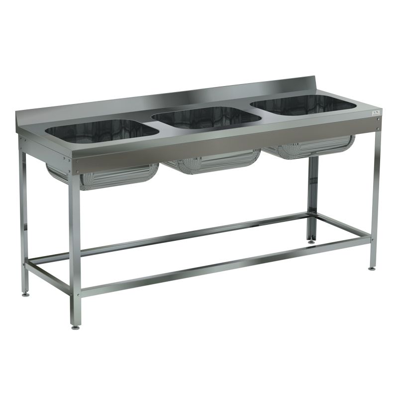 1800х600х870мм, Ванна моечная цельнотянутая трехсекционная (ёмкость - нерж. сталь. aisi 304, каркас уголок оцинк. сталь), (ёмкость 500х400х250)
