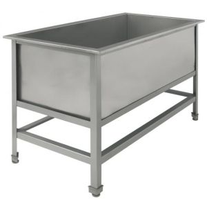 1340х700х850мм, Одна емкость сварная размером 1240х600х450 из нержавеющей стали марки AISI 304 толщиной 0,8мм. Каркас сварной из уголка 40х40 толщиной 2мм, покрытого порошковой краской серого цвета, внизу по периметру обвязка. Ванна комплектуется выпуском с нержавеющей решеткой и механическим запорным клапаном, диаметр выпуска 90мм, диаметр подключаемого сифона 50мм, регулируемые опоры. На дне ванны ребра (лучи) для жесткости и снижения вибрации. Ванна поставляется в собранном виде.