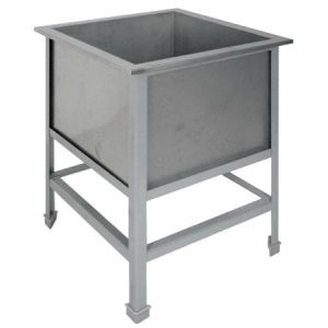 630х630х850мм, Одна сварная емкость размером 530х530х400 из нержавеющей стали марки AISI 304 толщиной 0,8мм. Каркас сварной из уголка 40х40 толщиной 2мм, покрытого порошковой краской серого цвета, внизу по периметру обвязка. Ванна комплектуется выпуском с нержавеющей решеткой и механическим запорным клапаном, диаметр выпуска 90мм, диаметр подключаемого сифона 50мм, регулируемые опоры. На дне ванны ребра (лучи) для жесткости и снижения вибрации. Ванна поставляется в собранном виде.