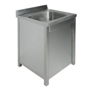 700х800х850мм, Одна цельнотянутая емкость размером 600х600х330 из нержавеющей стали марки AISI 304 толщиной 1мм, обнижение 2 мм. Объемный пристенный борт высотой 70мм. Корпус из трубы 40х40 нержавеющей стали марки AISI 304 толщиной 1,2мм.и боковых панелей из нержавеющей стали марки AISI 304 толщиной 0,8мм. Одна распашная дверь, полка. Ванна комплектуется выпуском с нержавеющей решеткой и механическим запорным клапаном, диаметр выпуска 90мм, диаметр подключаемого сифона 50мм, перелив, регулируемые опоры. На дно ванны нанесена виброшумоизоляция. Ванна поставляется в собранном виде.
