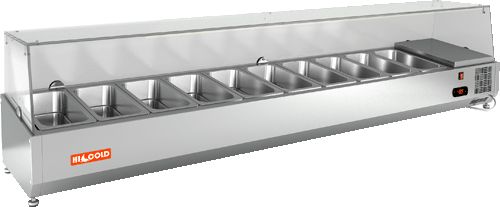 2000х325х459мм, VRX 2000 витрина охл.настольная, со стеклом, Вместимость: 10 x GN1/4