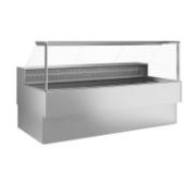 3100х1100х1230, t режим 0…+7 C. Витрина холодильная, (0…+7C),со встроенным агрегатом, гнутое стекло, 1 стеклянная полка, полезный объем — 0,72м3,охлаждаемая площадь поддонов для выкладки продуктов, 2,29 м2, статическое охлаждение, раздвижные задние шторки, оттайка естеств. теплопритоками, потр. эл.энергии в сутки —18кВт, 230кг,цвет корпуса — серый, экспозиционные поверхности — отделка под серебро, 64Вт, 220В, щиток в комплект не входит.