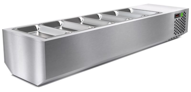 1000х385х265мм, Витрина охлаждаемая настольная открытая, изготовлена из нержавеющей стали марки AISI 430. Температурный режим +2…+7, вместимость: GN 1/3 - 2х150, плюс GN 1/2 - 1х150, мощность 100Вт. Компрессор (Китай). Хладон R-134. Поставляется в собранном виде.
