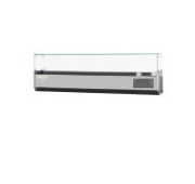 2560х322х485 мм, 70 кг, 0,25 кВт, 220 В, от + 2 до +10С, нерж сталь AISI 304, толщина изоляции 30 мм, со стеклянной крышкой, R452a, гастроемкости GN1/4 (опция), без агрегата