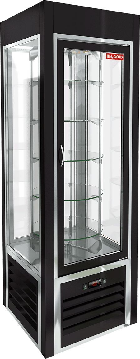 600х600х1950мм, VRC 350 R Sh Black FR витрина охл. кондитерская., вращ. полки, на низ. ножках, чёрная, рамка нерж.