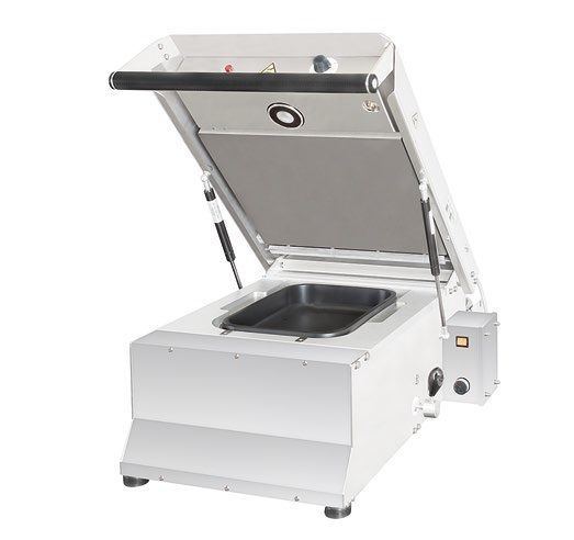 730x570x300 (760) мм, с одной формой, магнетный переключатель, термостат, таймер запайки 1-5 сек., термоэлемент с тефлоновым покрытием, с пружинами, конструкция из нержавеющей стали, максимальный размер лотка 370х350 мм, макс. диаметр плёнки 300 мм, макс. ширина плёнки 390 мм